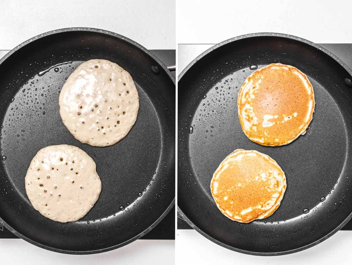 - Night-before prep: Mix the batter without baking powder. In the morning, stir in the baking powder, whisk briefly, and cook as usual.