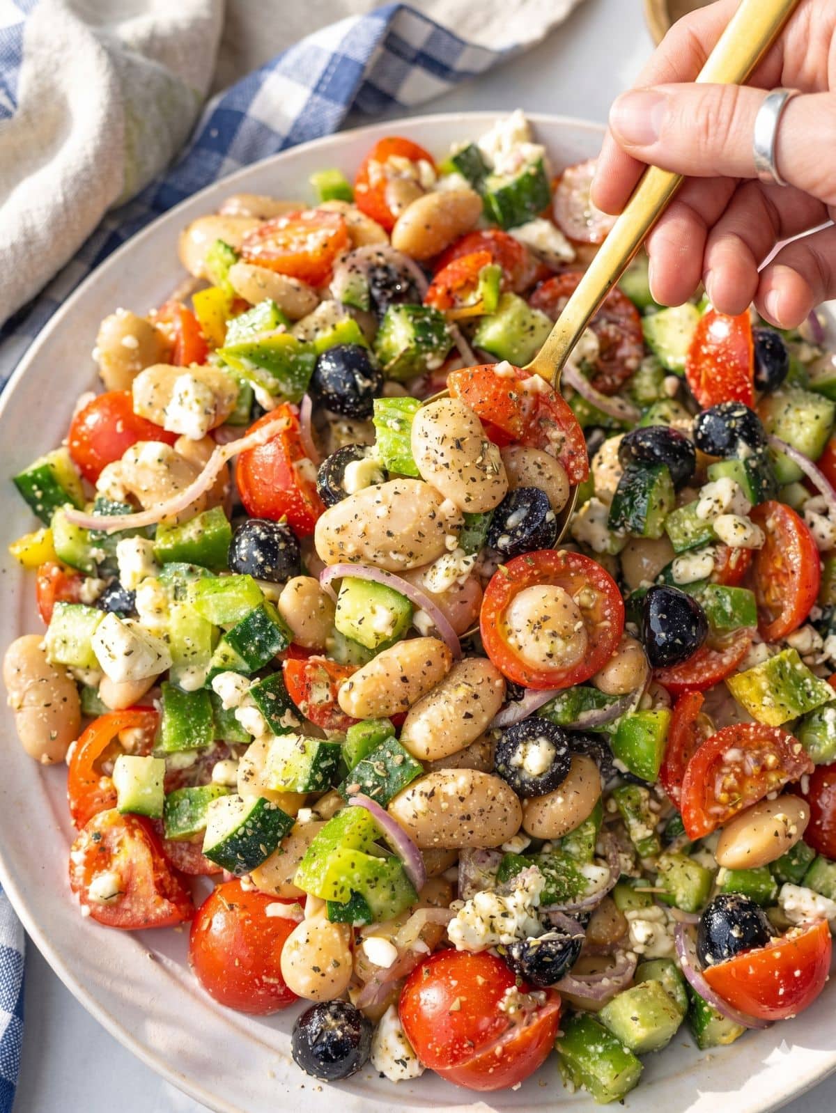 This is the recipe that started our bean salad-craze. It’s packed with finely chopped vegetables, beans, and a bold dressing, so every bite has the perfect mix of crunch and creaminess.